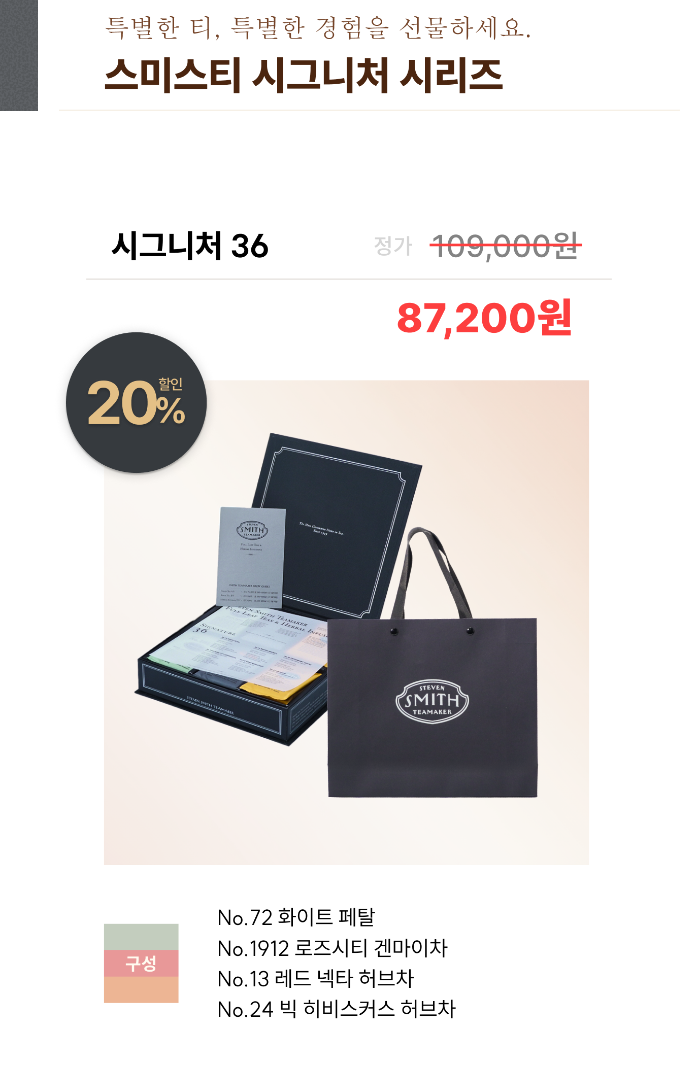 한정된 수량으로만 제공되는 스미스티의 리미티드 에디션으로 깊고 밸런스가 완벽한 차의 진수를 즐겨보세요.
