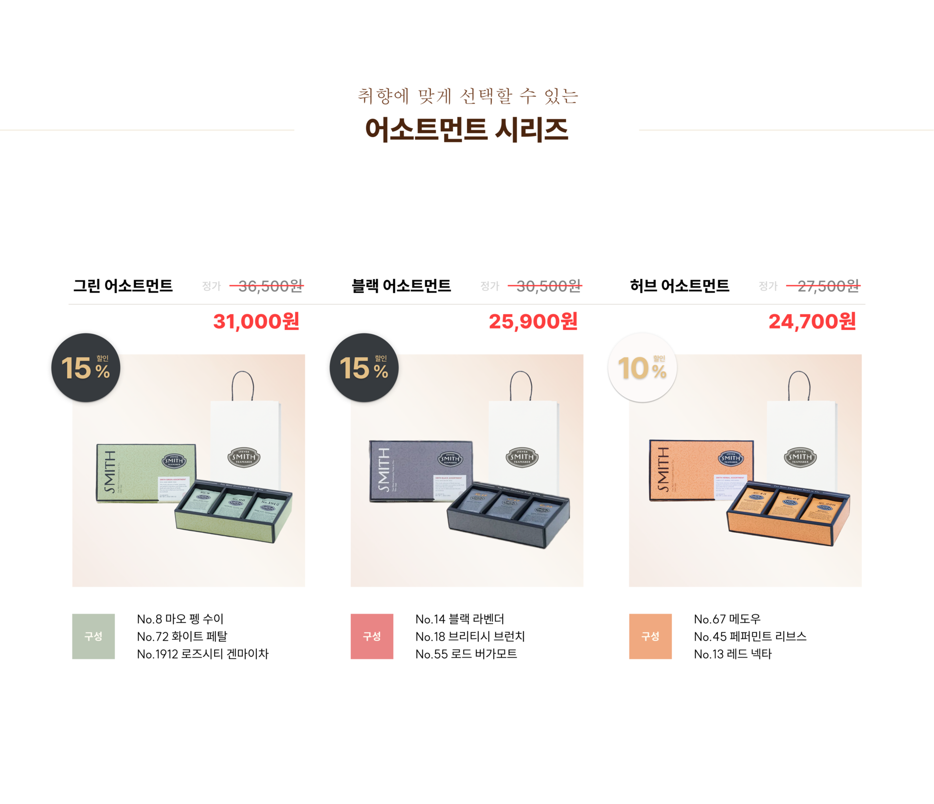 모든 취향을 만족시킬 수 있는 스미스티만의 다양한 선물세트를 만나보세요.